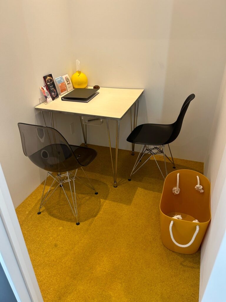緊張して来院する患者様の緊張をほぐし、安心してもらえる空間をという思いを込めてモコモコの床にしました。安心できる緑色と幸せの象徴の黄色を取り入れたお部屋になっております